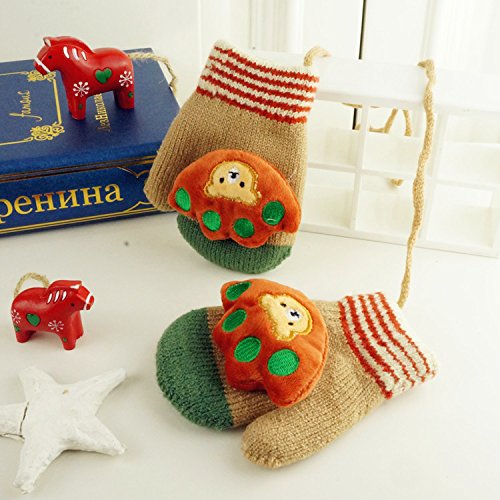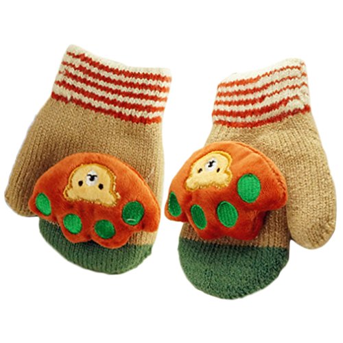 (FTzone)かわいいユニセックスキッズスーパー暖かいウールニット手袋・ミトン1歳2歳3歳4歳5歳 (足) (カーキ)
