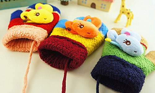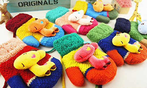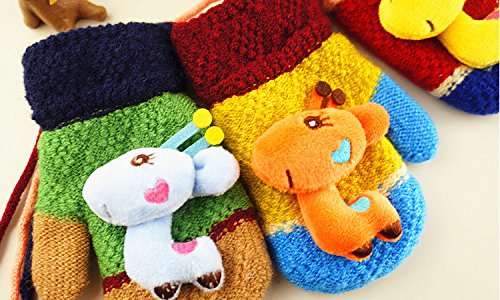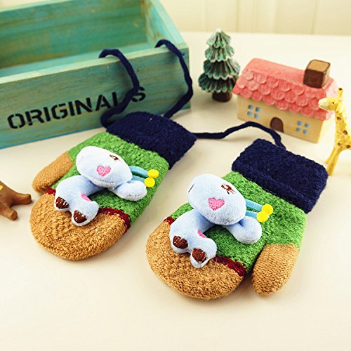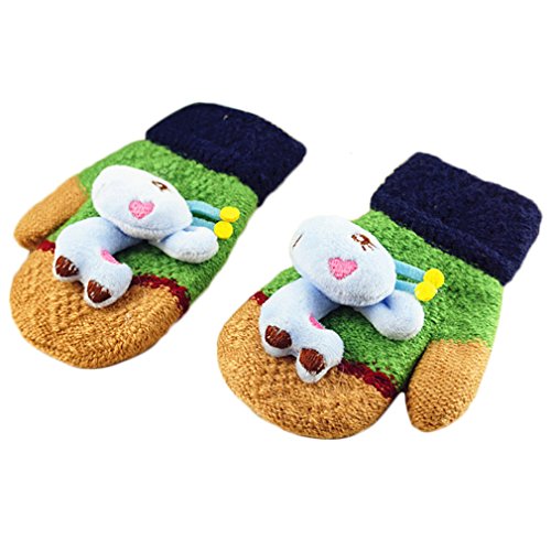 (FTzone)かわいいユニセックスキッズスーパー暖かいウールニット手袋・ミトン1歳2歳3歳4歳5歳 (キリン) (グリーン)