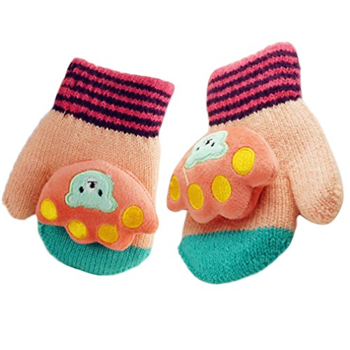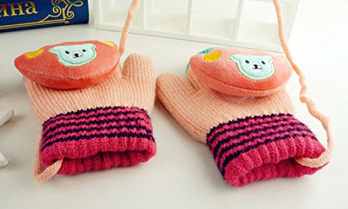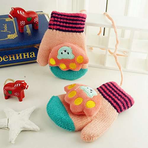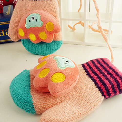 (FTzone)かわいいユニセックスキッズスーパー暖かいウールニット手袋・ミトン1歳2歳3歳4歳5歳 (足) (ピンク)