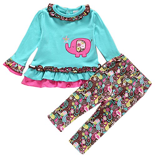 エフティーゾーン(Ftzone)子供服ベビーの女の赤ちゃんの柔らかい綿の上下セット長袖Tシャツ+ロングパンツセット(象) (3-9 ヶ月)
