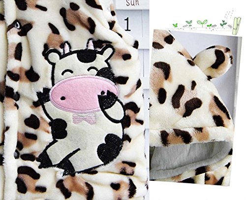 エフティーゾーン(Ftzone)子供服ベビーの女の赤ちゃん男の赤ちゃんの柔らかい綿のベストフード付きカバーオール ロンパース 赤ちゃん 動物 着ぐるみ 新生児秋冬防寒保温(牛) (12M, イエロー)