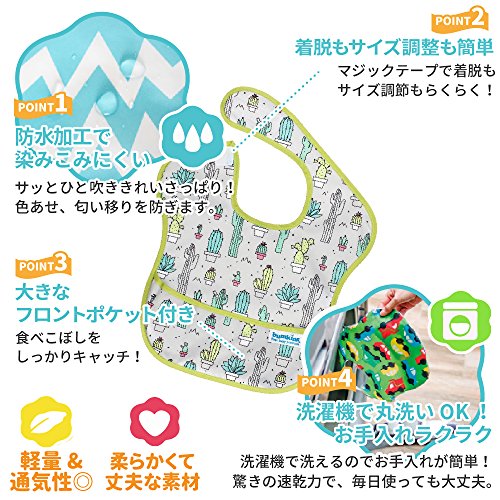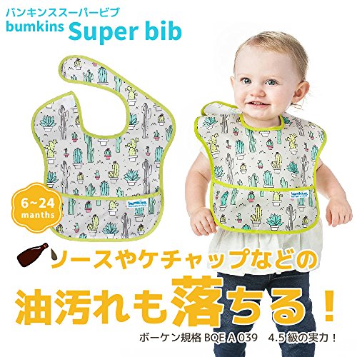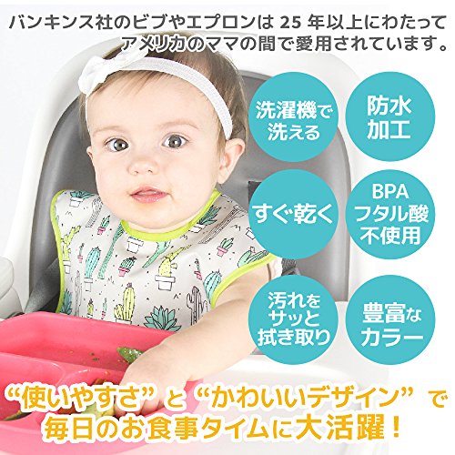 バンキンス 油が落ちるスタイ【日本正規品】スーパービブ 柔らかくて軽量 洗濯機で洗えてすぐ乾く お食事用防水ビブ 6~24ヶ月 Cacti(グレー) S-111