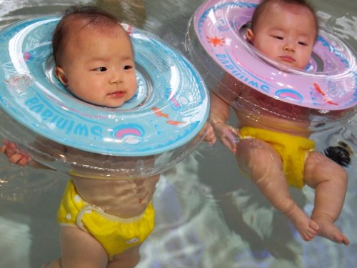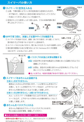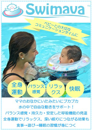 スイマーバは英国で発売以来、世界中のベビーが生まれて初めてのエクササイズを目的としたうきわ型スポーツ知育用具として愛用されています。この水に浮かぶ事から始まるプレスイミングは羊水にいた頃の記憶を忘れないうちから手で水をつかむ感覚、浮いている感覚、水に浸かっている感覚に親しみ、水への抵抗感や恐怖感をぬぐいさること、水中でのバランス感覚や心身ともに感覚を刺激することで好奇心を促す事につながります。スイマーバは自由に水の中で動く手足の動きを妨げず、どのように動けばどうなるのか身につける手助けをします。眠りが浅い、寝付きが遅いベビーには眠る15~30分前の水遊びでほどよく体がほぐれ、深い眠りにつながると言われています(個人差があります)。うきわ首リングはうきわ型のスポーツ知育用具です。乳幼児がひとりで遊ぶこと、ひとりで待たせるための商品ではありません。