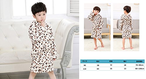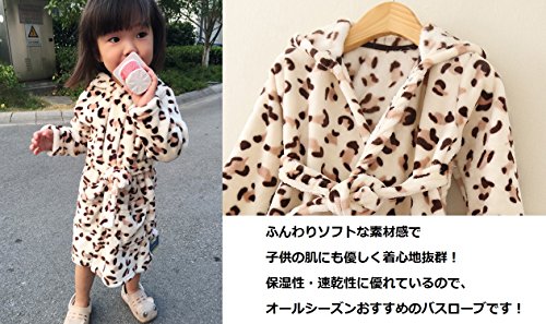 (FUPUTWO) バスローブ ガウン ベビー キッズ オールシーズン フード付き 湯冷め防止 速乾 保湿 2サイズ (110, ヒョウ柄)