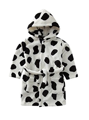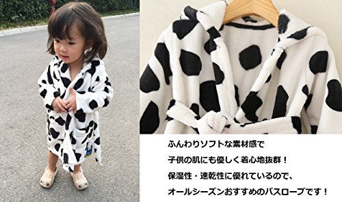 (FUPUTWO) バスローブ ガウン ベビー キッズ オールシーズン フード付き 湯冷め防止 速乾 保湿 2サイズ (90, ウシ柄)
