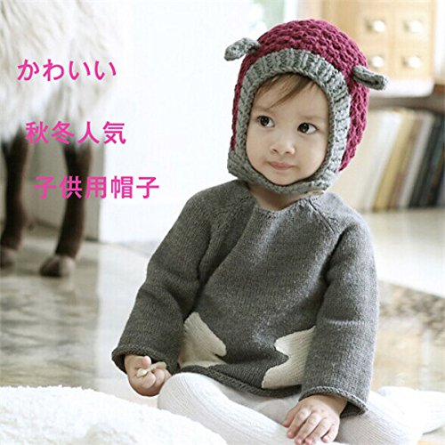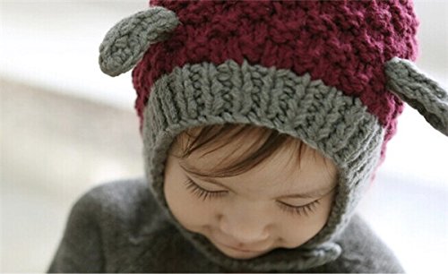 ベビー キッズ 可愛いひつじ耳付のニットキャップ帽 赤ちゃん ヘアバンド幼児 子供帽子 出産祝い 韓国子供服 クリスマスパーティー 伸縮性有 (クラレット)