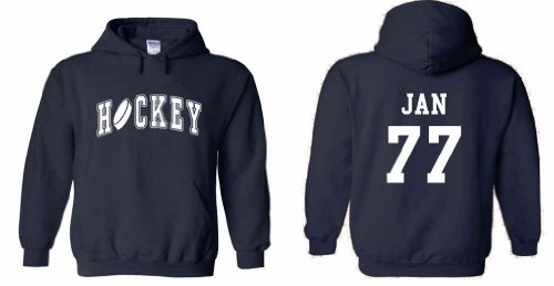 このフード付きのスウェットシャツは、自分のお名前(最大13文字と数(最大2文字)の要求。ホッケーのグラフィックが前面に、名前/番号されているかどうかをバックすることはできません。配置した名前と番号は7 "下のネックラインのフードが隠れることはありません。