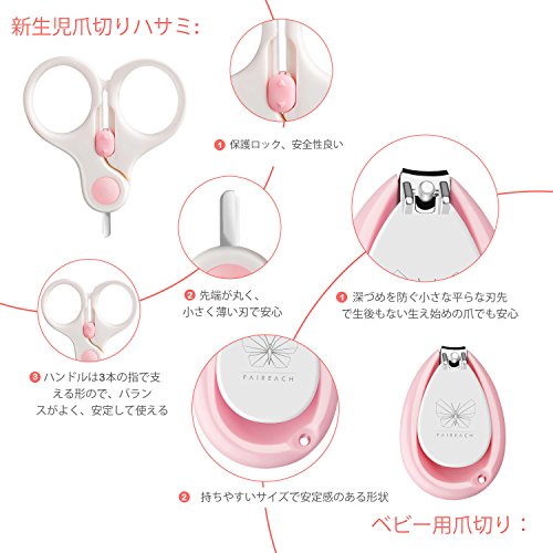ベビー 爪切りセット Faireach 新生児爪切り 赤ちゃん爪切り ベビーお手入れセット ベビー爪切り ベビー爪やすり ベビーハサミ ベビーピンセット 4in1 ハサミは0ヵ月から対象 爪切りは6ヶ月以上
