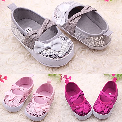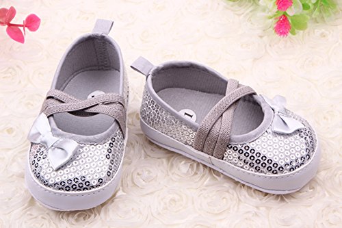 Fairy Season ベビー シューズ ファーストシューズ 子供靴 赤ちゃんシューズ 可愛い リボン 3-18ヶ月 (12, シルバー)