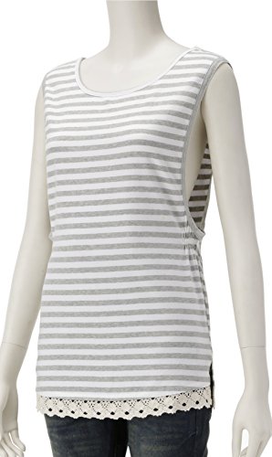 フェアリー らくらく授乳トップス裾レースML グレーボーダー 綿 241-8102