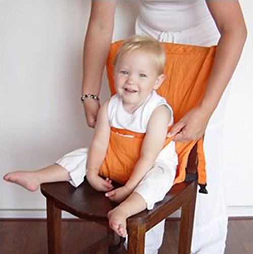 外出先で活躍! 椅子用固定帯 ベビー用品 持ち運び便利 ポータブル コンパクト チェアベルト◇SACKN-SEAT (オレンジ)