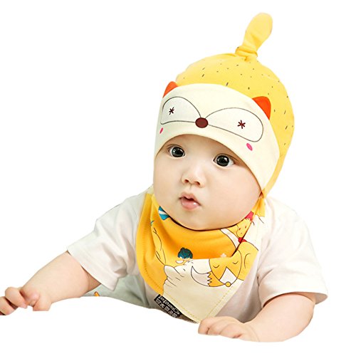 Faithtur 新生児 男の子女の子 / ベビー グッズ 三角形の よだれかけ ビブ かわいい おしゃれ よだれかけ 帽子一組 (Yellow 黄)