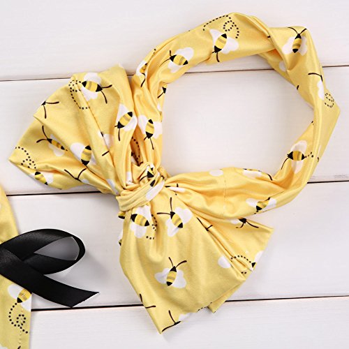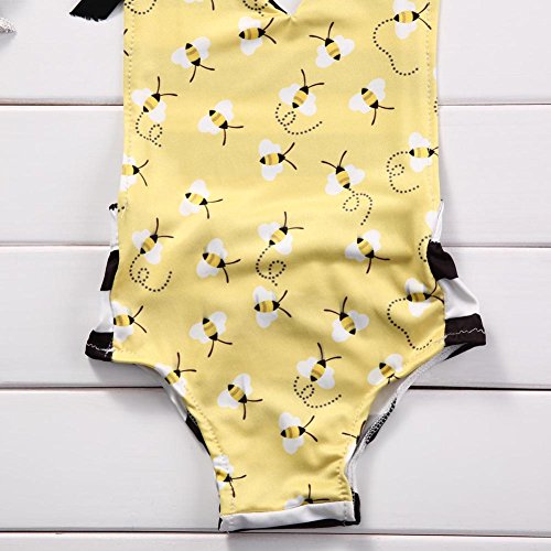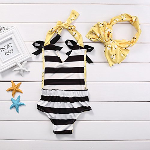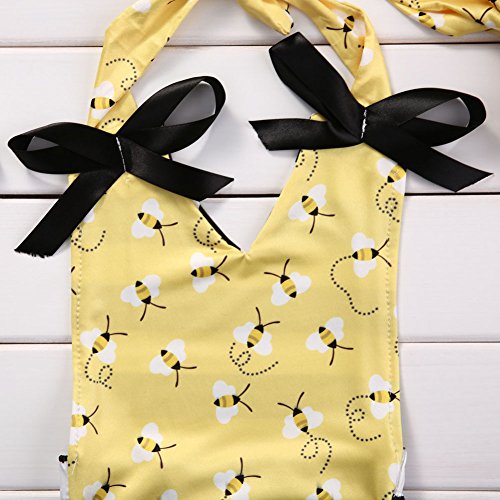 2個セットの赤ちゃんの女の子 可愛い ストライプ 蜂 設計 ホルター バックレス ジャンプスーツ ボディスーツ +ちょう結び ヘッドバンド 服装セット (6-9 月)