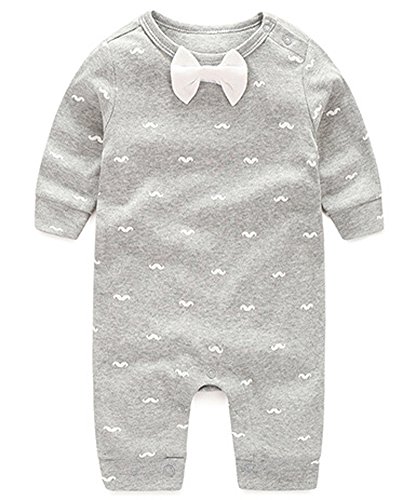 新生児 幼児 赤ちゃん 女の子 男の子 水玉模様 ちょうネクタイ 95% 綿 ジャンパーロンパースボディスーツウェア (12-18 月, Gray グレー)
