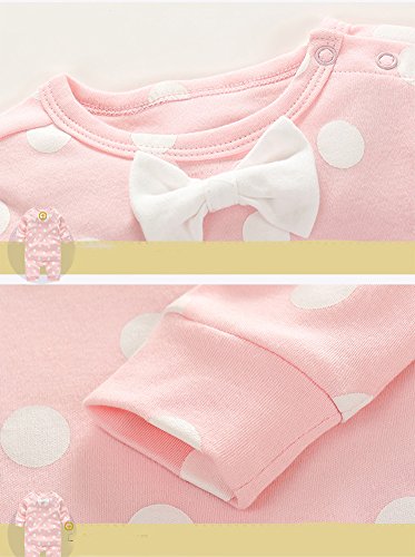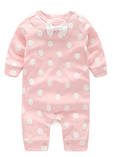 新生児 幼児 赤ちゃん 女の子 男の子 水玉模様 ちょうネクタイ 95% 綿 ジャンパーロンパースボディスーツウェア (3-6 月, Pink ピンク)