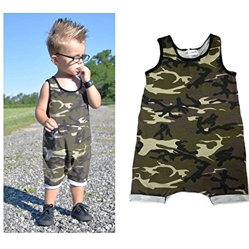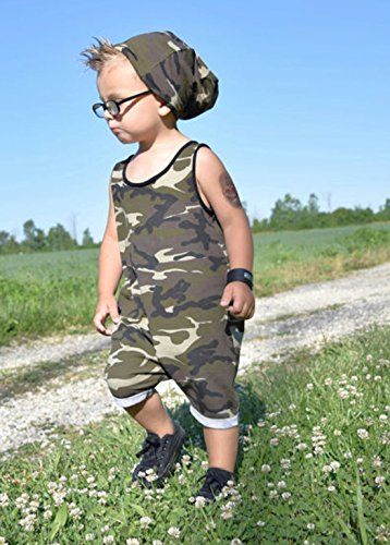 赤ちゃん 男の子 女の子 服 カジュアル ノースリーブ ロンパース ジャンプスーツ ボディスーツ (2-3 Years, 迷彩)
