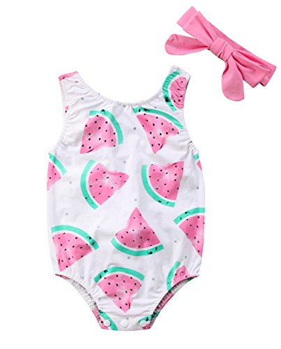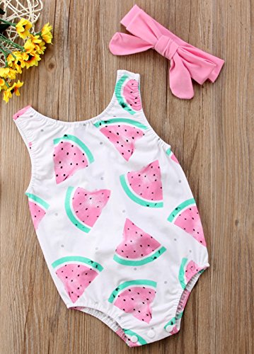 幼児の赤ちゃんの女の子スイカのロンパーのボディースーツ夏服洋服2本 (0-6 M, A)