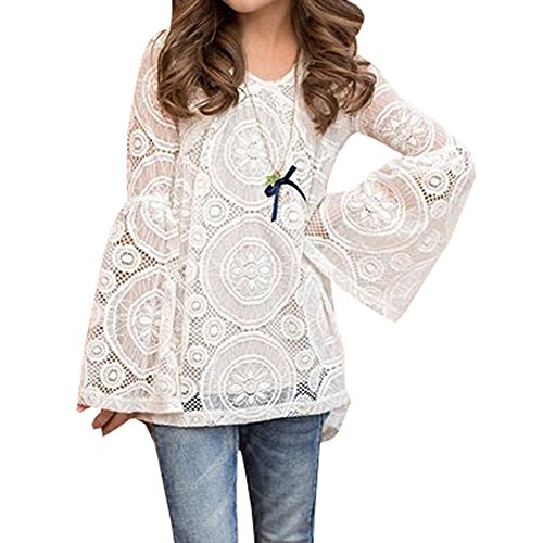 ベビーガールズ長袖レースカットフレアスリーブブラウストップ (6-7歳, A)