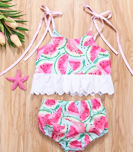 新生児の女の子のスイカのストラップトップとマッチングのショートパンツの衣装セット (12-18 M, A)