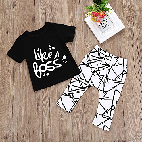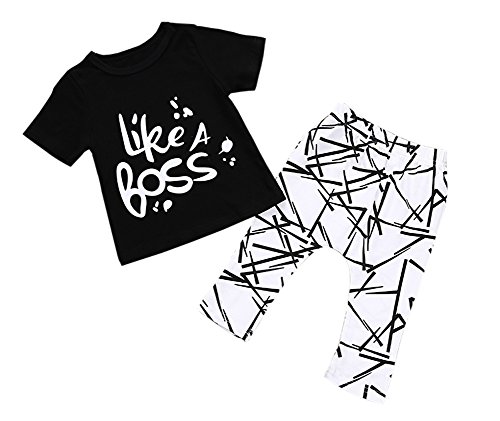 Faithtur 2ピース''Like A Boss'' 赤ちゃん 男の子 面白い Tシャツ トップス そして ロングパンツ 服装セット (18-24 M)