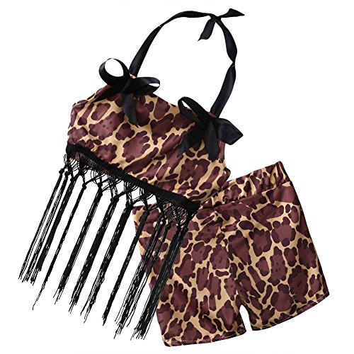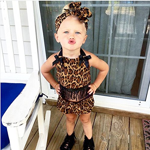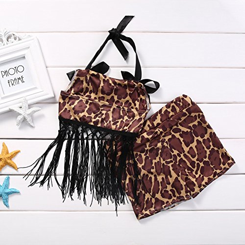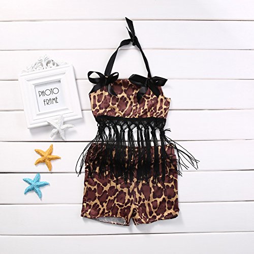 2 PCS 赤ちゃん 女の子 ホルター ヒョウ タッセル トップ+ショーツ 服装セット