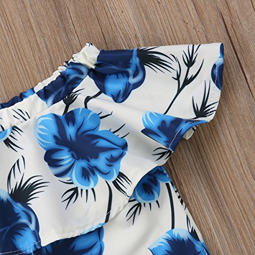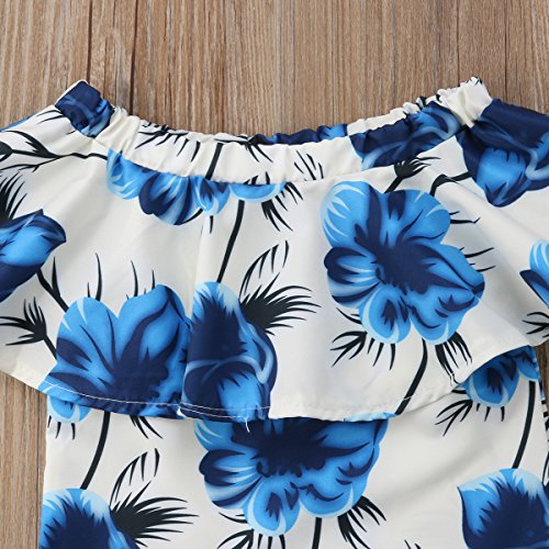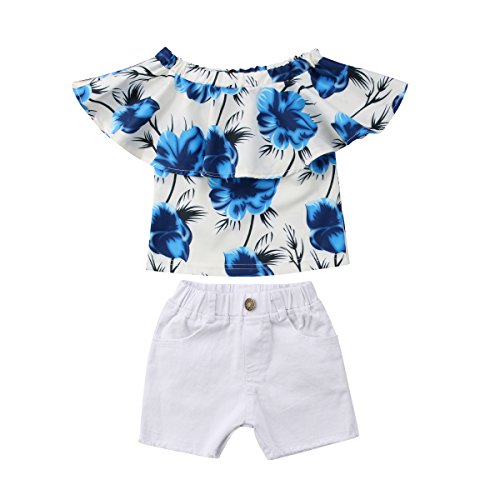 赤ちゃんの女の子青花オフショルダーチューブトップブラウスと白のタッセルショーツ0-4Y