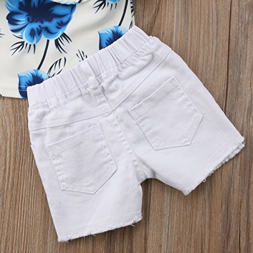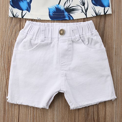 赤ちゃんの女の子青花オフショルダーチューブトップブラウスと白のタッセルショーツ0-4Y (3-4 歳, A)