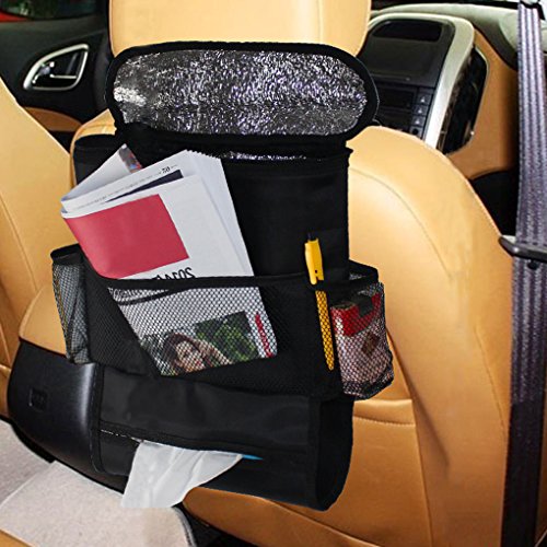 FakeFace 自動車 車内収納シート 飲み物 食事 保温保冷 車席後部 小物う収納 多機能 チャイルドシート カーアクセサリー 整理整頓 シートバッグ ブラック