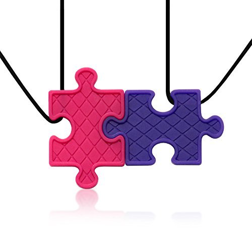 Puzzle Pendant Duo - Silicone Necklaces (Teething, Nursing, Sensory) (Fuchsia Pink/Plum Purple) by Siliconies