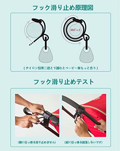- 〖用途〗:ベビーカーはフックにハンドルをかけます、それはママとベビーが必要な沢山ものをかけます、そうなると、ママに助かりました。それに、自動車のハンドル、スーパーのかごなど普通のフックとして物を掛けます。