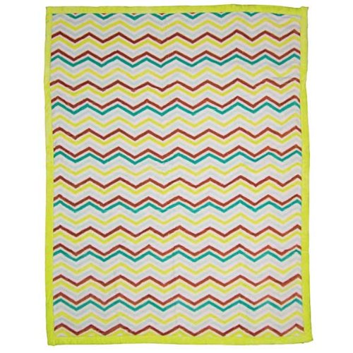 Large 40 inch by 30 inch blanket will find a multitude of uses in and out of the nursery;Made of a super-soft and cozy polyester with quality workmanship to assure that it will last for years;Cheerful chevron strips of blue, brown, green and turquoise surrounded by a green border;Machine wash cold in gentle cycle and tumble dry. Do not bleach;Coordinates with all items from the Tree Tops Nursery Separates Collection by True Baby