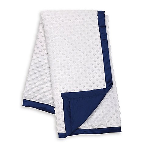 This warm and cuddly reversible blanket is made of super soft textured dot white fabric, framed with a navy blue satin border; your baby will love the soft feel of this plush minky dot fabric;Really two blankets in one, as it reverses to an all-over satin weave that is silky smooth to the touch;Generously sized at 40 by 30 inches and constructed to last for years, this will become your baby's favorite tummy time blanket;Machine wash and dry, over and over, without any loss of color, texture, or softness; made from premium quality fabrics;Coordinates with a host items from The Peanut Shell's extensive nursery separates collections