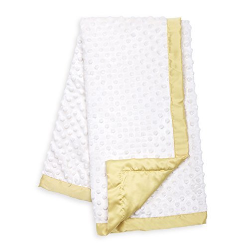 This warm and cuddly reversible blanket is made of super soft textured dot white fabric, framed with a yellow satin border; your baby will love the soft feel of this plush minky dot fabric;Really two blankets in one, as it reverses to an all-over satin weave that is silky smooth to the touch;Generously sized at 40 by 30 inches and constructed to last for years, this will become your baby's favorite tummy time blanket;Machine wash and dry, over and over, without any loss of color, texture, or softness; made from premium quality fabrics;Coordinates with a host items from The Peanut Shell's extensive nursery separates collections