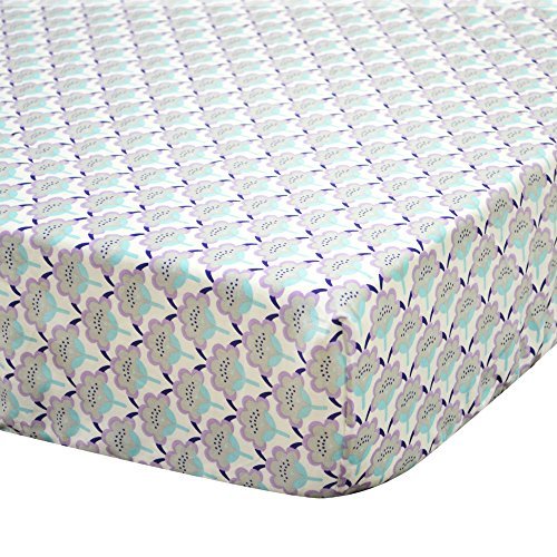 Made from 100% cotton sateen fabrics; machine wash and dry;Fitted sheet is fully elasticized to fit all standard sized 52 by 28 inch crib mattresses;Unique geometric floral print in vivid purple and aqua;Machine wash and dry;Coordinates with all items from the Zoe Nursery Separates Collection
