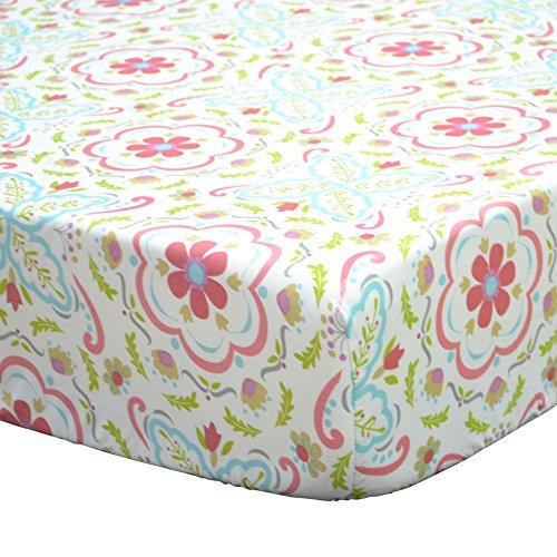 Made from 100% cotton sateen fabrics; machine wash and dry;Fitted sheet is fully elasticized to fit all standard sized 52 by 28 inch crib mattresses;A floral damask print features an intricate pattern of flowers and leaves in beautiful shades of coral hot pink, aqua blue, and green;Machine wash and dry;Coordinates with all items from the Gia Nursery Separates Collection and the Mila crib bedding set by The Peanut Shell