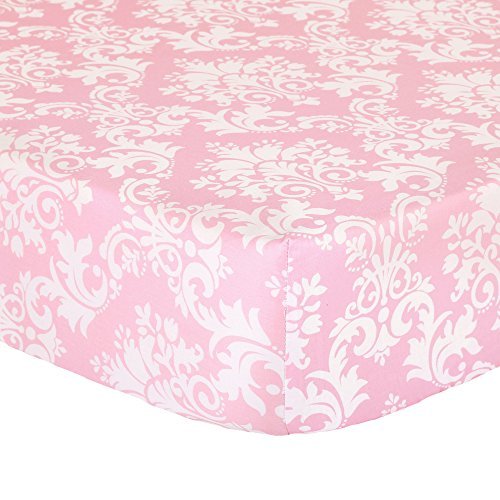 This Peanut Shell Cotton Fitted Crib Sheet is a stylish addition to your baby's nursery with a classic design featuring a pink damask print;Fabric is 100% cotton sateen, a weave that results in a bright satin-like appearance and feel, providing the optimal mix of durability, beauty, breathability, and ease of care;Fitted sheet is fully elasticized with an 8 inch pocket to fit all standard sized 52 by 28 inch crib mattresses; designed specifically to make those middle of the night sheet changes quick and easy;Made with busy new moms in mind; just machine wash and tumble dry;Complete the dressing of your crib with coordinating quilts, dust ruffles and bumpers from The Peanut Shell along with a host of other nursery decorating accessories