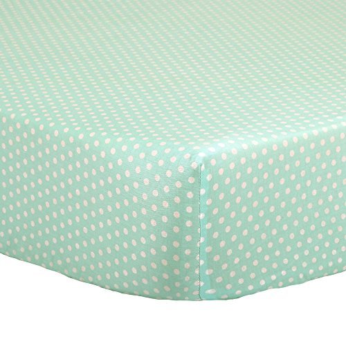 This Peanut Shell Cotton Fitted Crib Sheet is a stylish addition to your baby's nursery with a classic design featuring a mint green polka dot print;Fabric is 100% cotton sateen, a weave that results in a bright satin-like appearance and feel, providing the optimal mix of durability, beauty, breathability, and ease of care;Fitted sheet is fully elasticized with an 8 inch pocket to fit all standard sized 52 by 28 inch crib mattresses; designed specifically to make those middle of the night sheet changes quick and easy;Made with busy new moms in mind; just machine wash and tumble dry;Complete the dressing of your crib with coordinating quilts, dust ruffles and bumpers from The Peanut Shell along with a host of other nursery decorating accessories