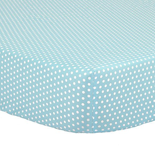 This Peanut Shell Cotton Fitted Crib Sheet is a stylish addition to your baby's nursery and features a classic polka dot in teal blue and white;Fabric is 100% cotton sateen, a weave that results in a bright satin-like appearance and feel, providing the optimal mix of durability, beauty, breathability, and ease of care;Fitted sheet is fully elasticized with an 8 inch pocket to fit all standard sized 52 by 28 inch crib mattresses; designed specifically to make those middle of the night sheet changes quick and easy;Made with busy new moms in mind; just machine wash and tumble dry;Complete the dressing of your crib with coordinating quilts, dust ruffles and bumpers from The Peanut Shell along with a host of other nursery decorating accessories