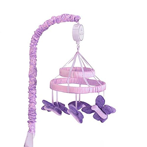 Musical mobile features plush lavender butterflies;Plays Brahm's Lullaby to gently soothe your baby to sleep;Encourages visual, auditory, and motor development;Attaches to a standard sized crib;Coordinates with all items from the Papillon Crib Bedding Collection