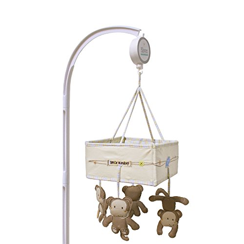 Measures 12 L x 11 W x 6 H;Plastic Frame, surface clean with a moist cloth or sponge;100% certified organic cotton;Playful plush monkeys, assembly instuctions included;Coordinates with the Go Bananas crib bedding collection by Little Haven