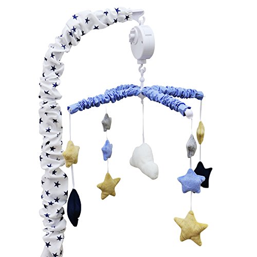 Mobile features adorable star shapes encircling a cloud;Gently soothe your little one to sleep with this wind up mobile; no batteries necessary;Promotes auditory and motor development and provides visual stimulation;Coordinates with the Stargazer Crib Bedding Collection by Peanut Shell