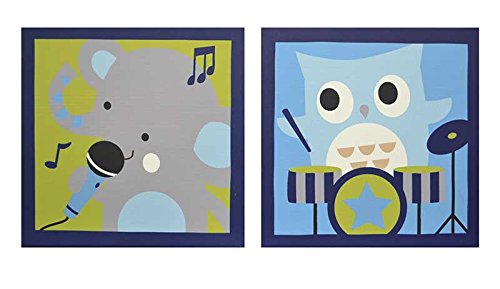 2本の8 × 8インチのキャンバスに木製のフレームに歌う、象とdrum-playing特徴ののフクロウ青と緑の背景に使用します。