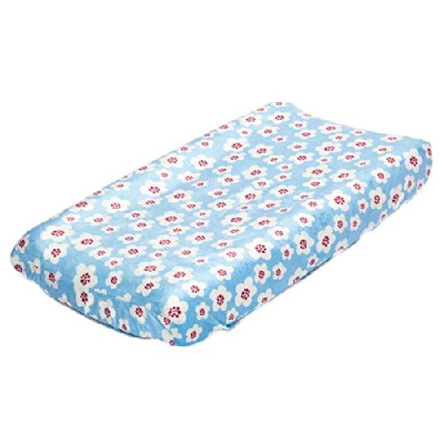 Super soft changing pad cover is fully elasticized to fit standard contoured changing pads measuring up to 16 by 32 inches; accomodates safety straps;Features a contemporary floral pattern on a baby blue background;Easy to care for polyester plush fabric will retain its vibrant colors wash after wash.;Coordinates with all items from the Sweet Tweet Nursery Separates Collection by True Baby