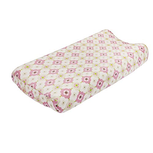 Just one item from the popular Penelope Nursery Collection, this soft and practical changing pad cover coordinates with a host of Penelope nursery d'cor items; or looks great by itself;Most changing pad covers use woven fabrics; but the Penelope cover is made with 100% cotton jersey knit fabrics to provide a much softer and supple feel and more breathability;Fully elasticized to assure a secure fit every time; designed to fit standard contoured changing pads measuring 16 by 32 inches;Features a modern floral print in shades of pink and tan;Designed with busy new moms in mind; just machine wash and tumble dry; jersey knit fabrics normally require little ironing but feel free to do so at the lowest setting as needed