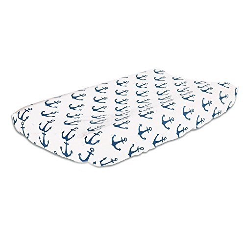 Navy Blue Anchor Print 100% Cotton Baby Changing Pad Cover by The Peanut Shell by The Peanut Shell
