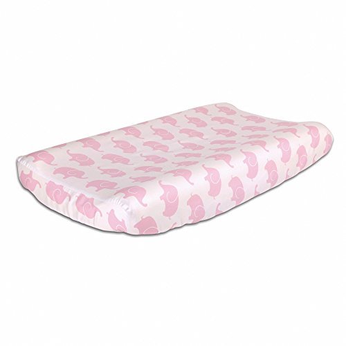 This Peanut Shell changing pad cover features a contemporary elephant print in pink;Fabric is 100% cotton sateen, a weave that results in a bright satin-like appearance and feel, providing the optimal mix of durability, beauty, breathability, and ease of care; machine wash and dry;Includes buttonholes on the sides to accommodate changing pads with straps and buckles to keep baby safe and secure;All-around elastic assures a perfect fit to standard contoured changing pads measuring 32 inches by 16 inches by 5.5 inches;Coordinating crib bedding, window treatments and other accessories are available from The Peanut Shell to create your perfect nursery