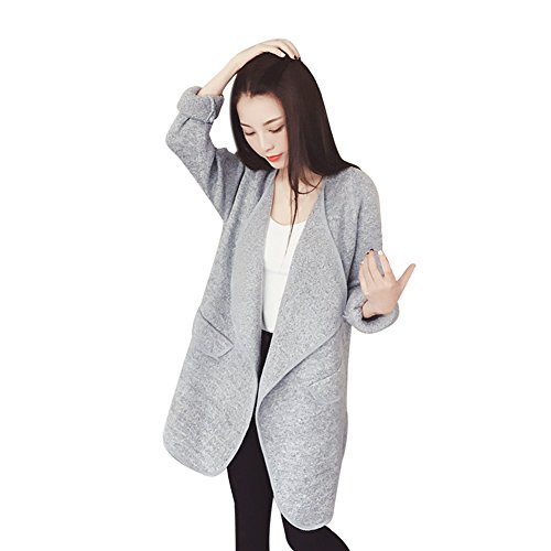 ファッションストーリーレディースオープンフロントLooseトレンチコートアウター滝カーディガンセーター カラー: グレイ