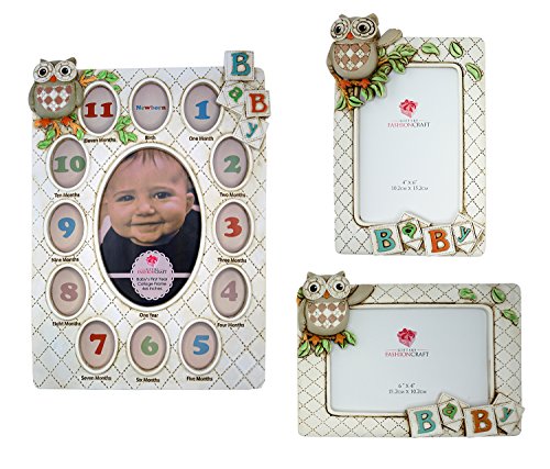 赤ちゃんの最初年フレームセット – Includesコラージュフレームコラージュフクロウ、フレーム、4インチ、4インチ、6インチby 6インチフレーム – フクロウ – ハンドペイント3 Piece Set – Item # k105002 – 105003 – 105004