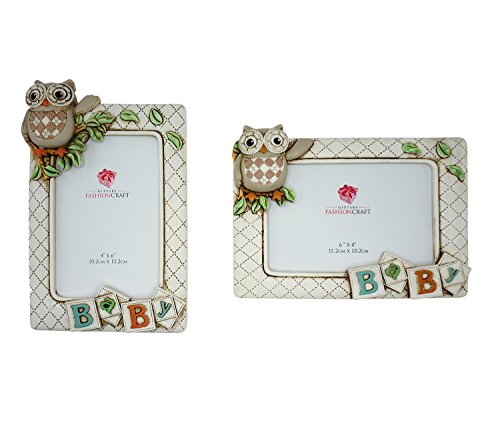 ヴィンテージキルト風フクロウ赤ちゃん写真フレームセット – Includes 2フレーム4 x 6インチ – 手描きフクロウ2 Piece Set
