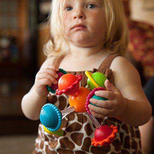 Unique sensory toy full of spinning, textured, squishy features little hands will love to explore;Encourages sensory learning, hand-eye coordination, motor skills, exploration;Little ones will be discovering and learning at every twist and turn!;Exceptionally strong, high-quality materials - BPA Free - Wonderfully safe for baby